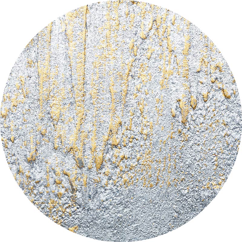 Runde Tapete mit schimmerndem Gold- und Silberputz.