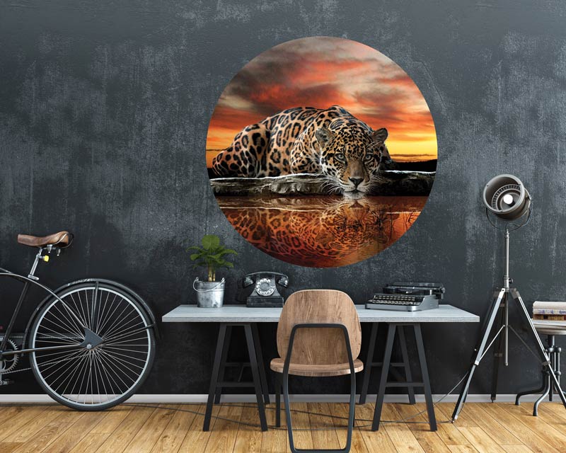 Die Runde Tapete mit dem Leopard ist ein echter Hingucker und die perfekte Ergänzung für jeden Raum.