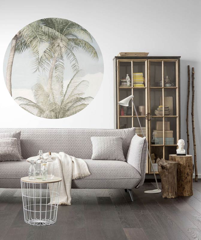Der Tapetenkreis mit den Palmen schafft einen einzigartigen Look in jedem Raum.
