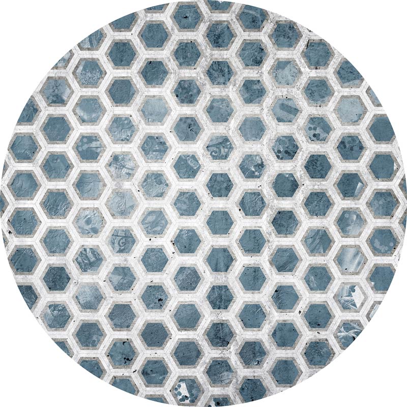 Runde Tapete mit schimmernden Hexagonen in 3D-Optik.