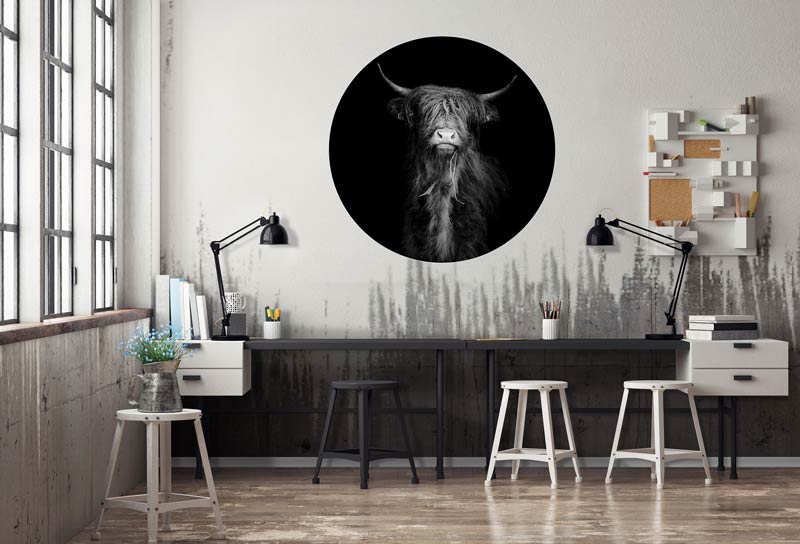 Der Scottish Highlander Tapetenkreis ist ein echter Blickfang und sorgt für einen industriellen Look in jedem Raum.