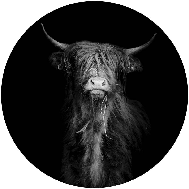 Schottischer Highlander Runde Tapete schwarz und weiß