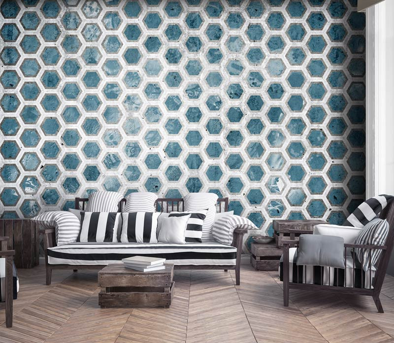 Die Sechseck-Fototapete ist die perfekte Ergänzung für jeden Raum.