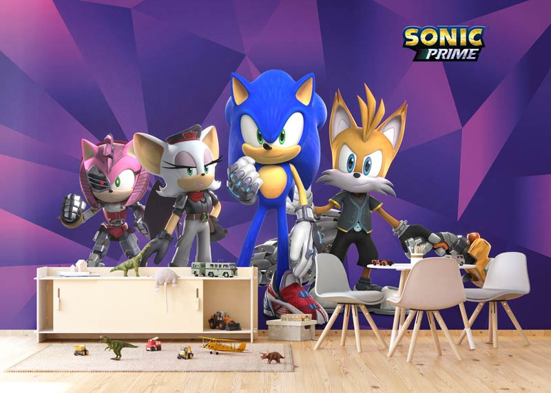 Holen Sie sich die Magie von Sonic Prime mit dieser spektakulären Fototapete in Ihr Zuhause. Sonic und seine Freunde posieren stark vor einem dynamischen Hintergrund, bereit für neue Abenteuer im Multiversum. Die leuchtenden Farben und die kultigen Charaktere verleihen dem Raum einen energiegeladenen und verspielten Look.