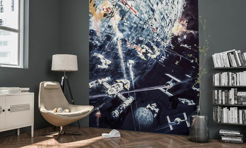 Die Star Wars Fototapete kommt auf hochwertiger Vliestapete.