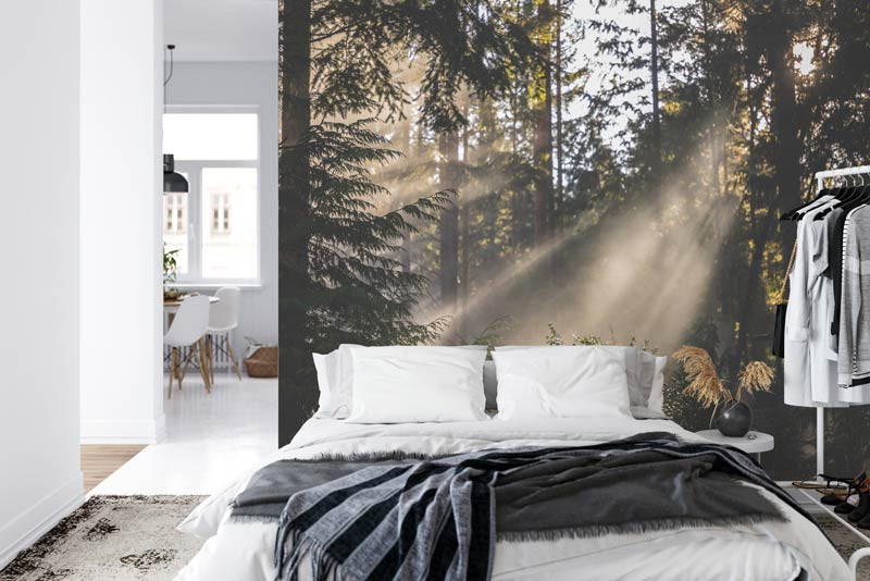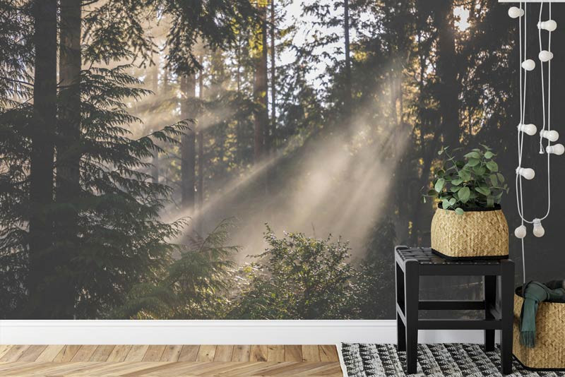 Lassen Sie sich von der strahlenden Pracht einer Waldlandschaft verzaubern - mit unserer individuell gestalteten Fototapete Radiant Forest Landscape. Dieses atemberaubende Design bringt die warmen Farben und die lebendige Atmosphäre eines Waldes direkt in Ihr Interieur und verleiht jedem Raum einen Hauch von natürlicher Schönheit.