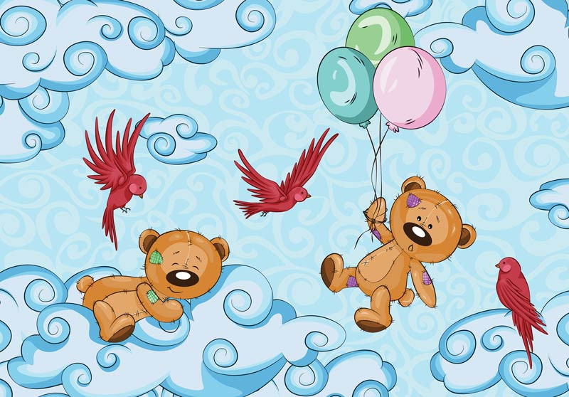 Fototapete von Teddybären, hoch oben in den Wolken.