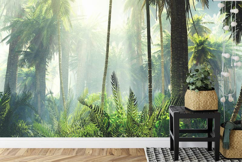 Entdecken Sie die üppige Pracht der Fototapete Tropical Forest. Lassen Sie sich von der üppigen Vegetation, den farbenfrohen Blumen und der exotischen Tierwelt eines tropischen Waldes verzaubern, wo jeder Moment ein neues Abenteuer und eine neue Entdeckung verspricht.