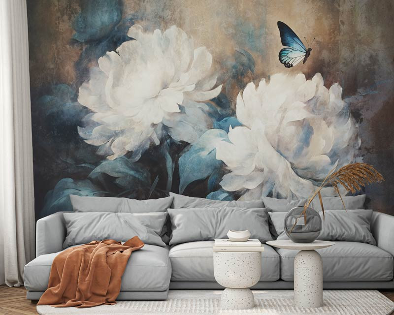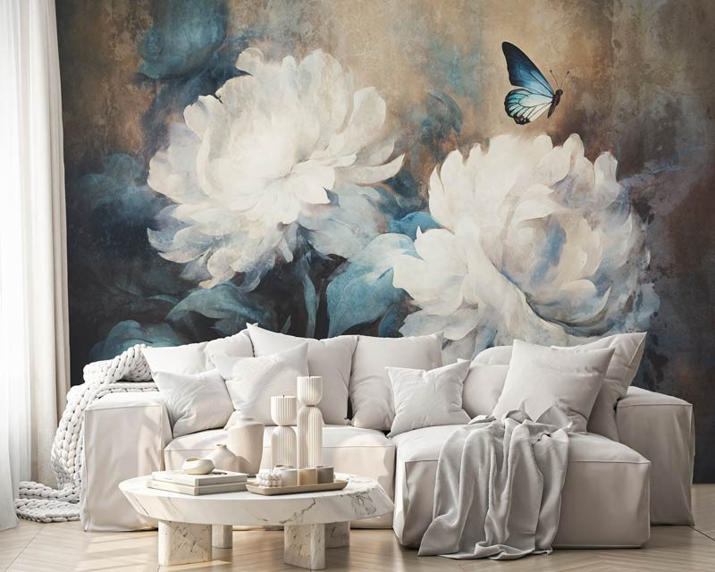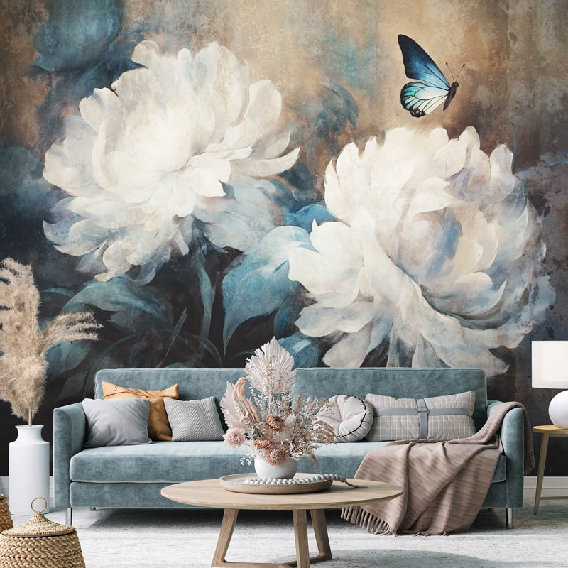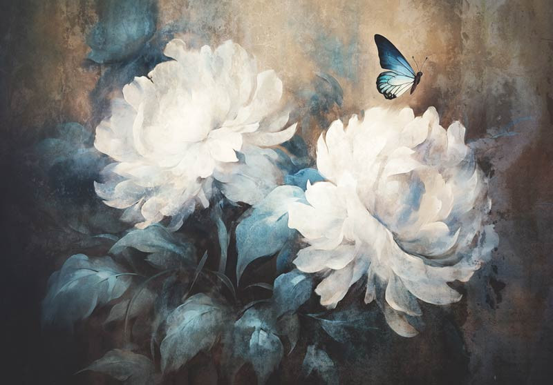 Die Fototapete White Flowers strahlt Gelassenheit und Eleganz aus, ideal für eine ruhige Atmosphäre im Schlafzimmer oder Wohnzimmer. Die zarten weißen Blumen vor dem sanften Hintergrund wirken leicht und edel.